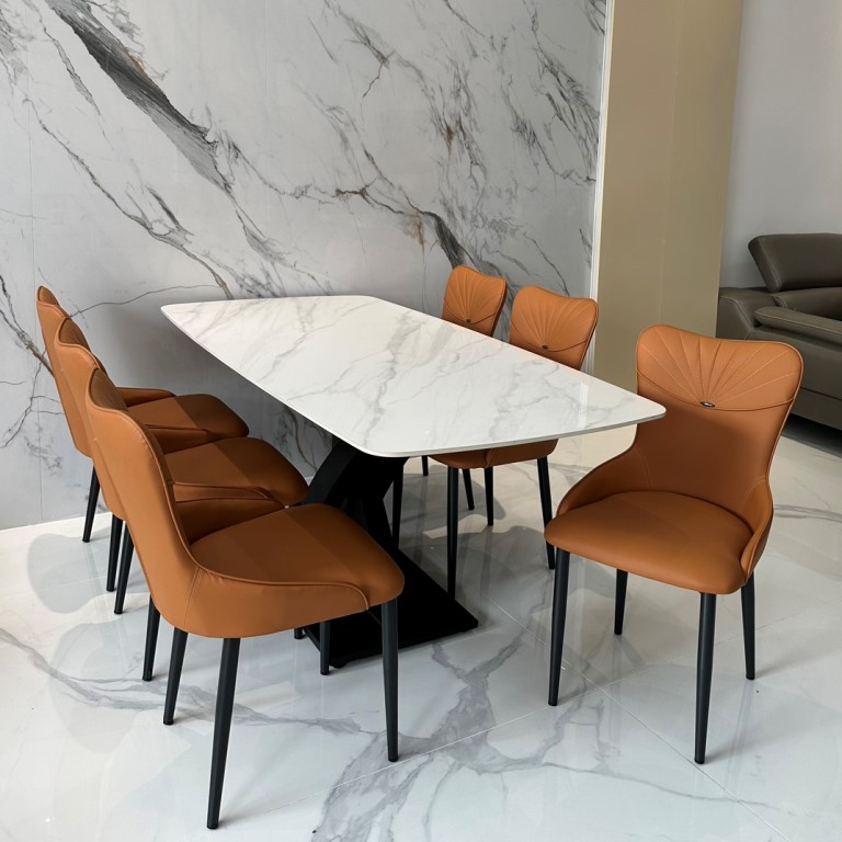 Bàn Ăn 6 Ghế Mặt Đá Hiện Đại 1424S - Bộ Bàn Ăn 6 Ghế Hiện Đại Và Sang Trọng!