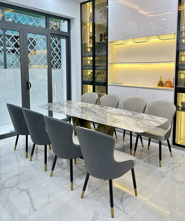 Căn bếp không chỉ là nơi để nấu nướng mà còn nơi để các thành viên quây quần bên mâm cơm của mọi gia đình. Lựa chọn bộ bàn ghế ăn phù hợp giúp không gian thêm phần ấm cúng. Bộ bàn ăn 8 ghế nhập khẩu cao cấp là một trong những lựa chọn lý tưởng của những căn bếp rộng rãi và sang trọng. Bộ bàn ăn mặt đá đẹp mang đến sự sang trọng, đẳng cấp trong từng đường nét.
