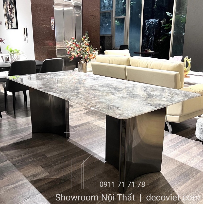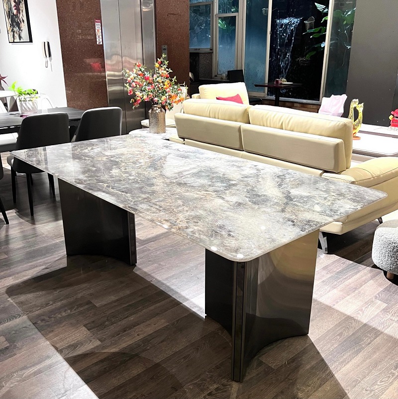 Bàn Ăn Chân Inox Mặt Đá 1395S | Bàn Ăn Mặt Đá Sang Trọng!