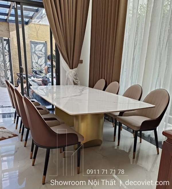 Không chỉ là nơi để gia đình quây quần, ăn uống sinh hoạt mà việc lựa chọn bàn ăn đẹp còn giúp hài hòa tổng thể không gian của ngôi nhà bạn. Nếu bạn đang cần tìm một bộ bàn ghế ăn giúp căn bếp của mình trở nên cao cấp sang trọng, thì bộ Bàn Ăn Chân Inox Mặt Đá cao cấp 1350S chính là sự lựa chọn hợp lý. Với sự kết hợp hài hòa giữa chất liệu đá nhập cao cấp và inox bền chắc đã tạo nên một sản phẩm bàn ăn 8 ghế cao cấp hoàn hảo vừa đáp ứng được tính thẩm mỹ cũng như trãi nghiệm sử dụng.