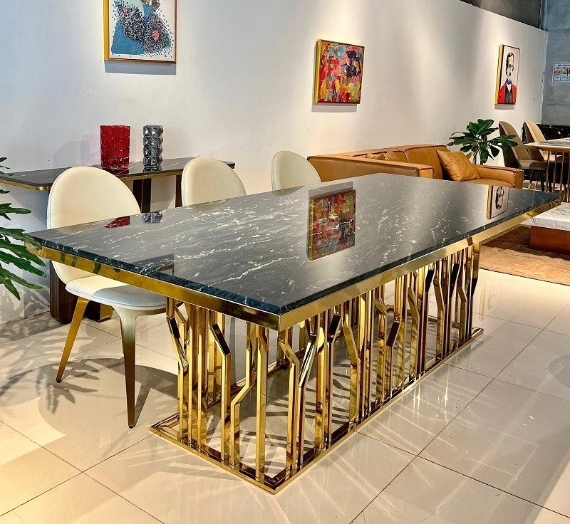 Chất liệu: Chân inox mạ vàng, mặt đá cao cấp.