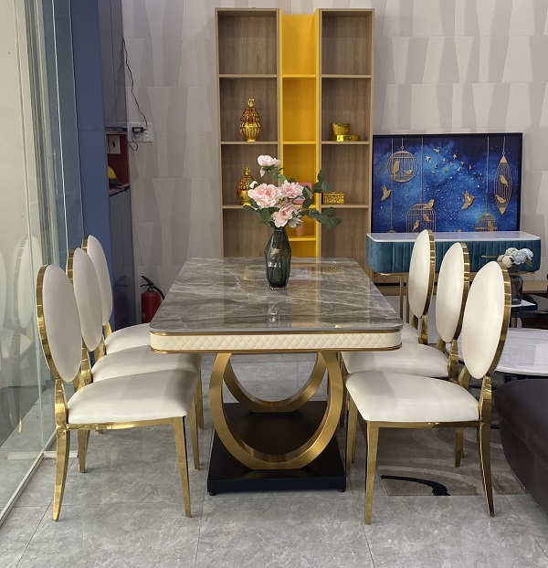 Bàn Ăn Mặt Đá Nhập Khẩu 637S là một món đồ nội thất không thể thiếu trong gian bếp của mỗi gia đình Việt. Những bộ bàn ghế ăn đẹp giá rẻ có vai trò quan trọng trong việc mang tới vẻ đẹp tổng thể cho toàn bộ ngôi nhà. Bởi hiện nay xu hướng thiết kế không gian mở đang rất được ưa chuộng vị thế phòng ăn được thiết kế liên thông với phòng khách, vì thế bạn cần lựa chọn cho ngôi nhà của mình các mẫu bàn ghế ăn đẹp giá rẻ nhưng không kém phần hiện đại để mang tới không gian hoàn hảo nhất. Để tìm ra được một bộ bàn ăn đẹp giá rẻ phù hợp cho nhà mình bạn cần đặt ra 3 câu hỏi: Nên mua mẫu bàn ghế ăn hiện đại hay bàn ghế ăn tân cổ điển? Chọn chất liệu bộ bàn ghế ăn cơm như thế nào? Dùng bàn ăn cao cấp chọn bộ bàn ăn 6 ghế hiện đại hay 4 ghế, 8 ghế, 10 ghế? Hình dáng kích thước tối đa của bàn ăn là bao nhiêu?...