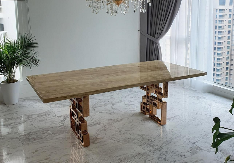 Bộ Bàn Ăn Chân Inox Mặt Gỗ Acrylic Cao Cấp Cho Phòng Bếp Sang Trọng!