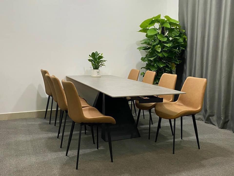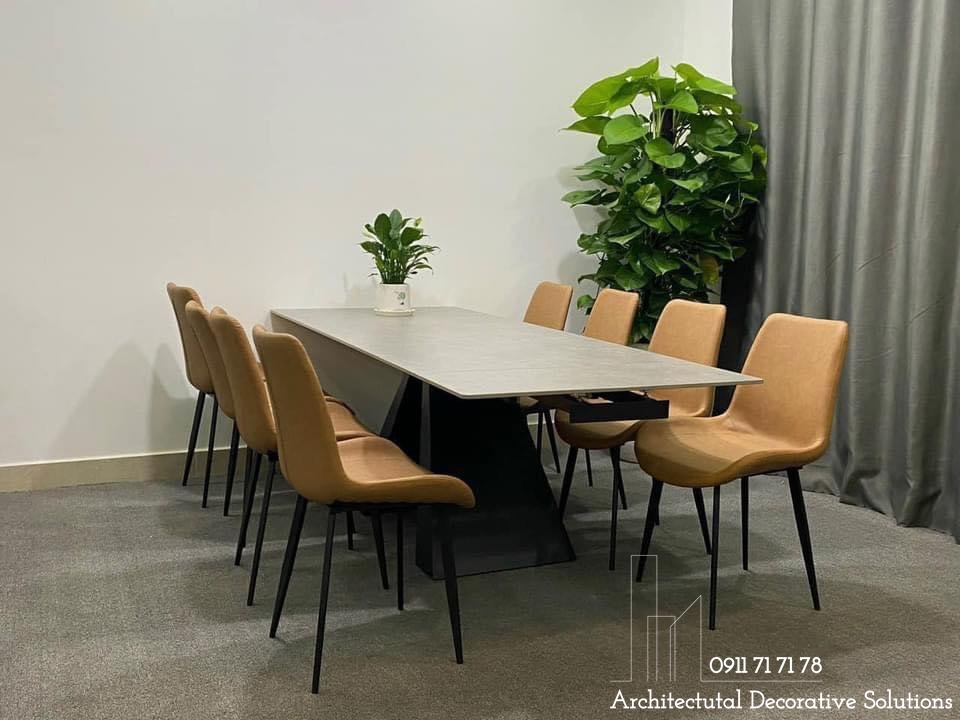 Bàn ăn sử dụng 2 chất liệu được ưu chuộng hiện hành là chân sắt và mặt đá cao cấp. Chất liệu này vừa mang đến phong cách hiện đại, vừa sang trọng lại dễ sử dụng và tuổi thọ cao. Phần chân bàn được thiết kế độc đáo với sắt khổ lớn uốn cong bật lên vẻ đẹp của thiết kế. Phần mặt đá sử dụng đá nhập cao cấp chống thấm dễ dàng lau chùi. Vân đá cẩm thạch cực kỳ sang trọng.