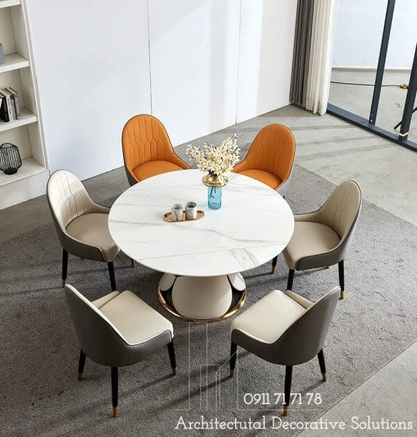 "Chị muốn một bộ bàn ăn có phong cách hiện đại để phù hợp với căn nhà mới, nhưng chị lại sợ những mẫu mã hiện đại thường nhìn hơi lạnh lẽo", đó là bộc bạch của chị khách khi tìm đến DecoViet. Hiểu được tâm tư đó, DecoViet đã mang đến thị trường mẫu Bàn Ăn Tròn Xoay 6 Ghế 825S. Nếu thiết kế hình tròn mang đến hoài niệm về những căn bếp Việt xưa, nơi gia đình quây quần bên bữa cơm đầm ấm, thì việc khéo léo sử dụng chất liệu chân sắt và mặt đá cao cấp lại đáp ứng tính ứng dụng trong cuộc sống hiện đại cũng như phù hợp hoàn hảo với xu hướng trang trí nội thất hiện hành.