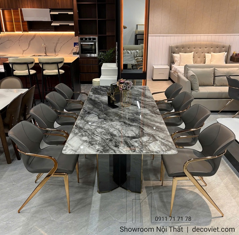 Các mẫu bàn ăn mặt đá 8–10–12 ghế kết hợp ghế da đồng bộ đang trở thành xu hướng nhờ sự hài hòa giữa thẩm mỹ, công năng và độ bền. Thiết kế này phù hợp với hầu hết không gian từ căn hộ cao cấp, nhà phố đến biệt thự, mang lại sự sang trọng và tiện nghi dài lâu.