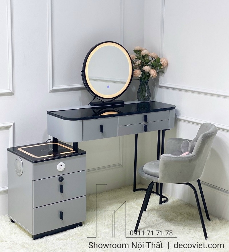 Bàn trang điểm là thứ không thể thiếu đối với các bạn gái. Ngoài việc giúp cho công đoạn làm đẹp dễ dàng hơn, bàn phấn trang điểm còn có tác dụng trang trí phòng và thể hiện gu thẩm mỹ của chủ nhân. Bàn Trang Điểm Cao Cấp 43S được sản xuất với các nguyên liệu gỗ cao cấp qua quy trình xử lý chuyên nghiệp nên bàn trang điểm gỗ tự nhiên của DecoViet không cong vênh và mối mọt trong qua trình sử dụng. Thiết kế hiện đại với đa dạng mẫu mã dễ dàng lựa chọn để phù hợp với phong cách thiết kế phòng ngủ của bạn.