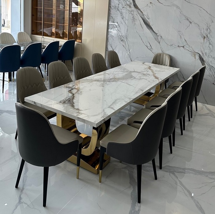 Bộ Bàn Ăn 12 Ghế Mặt Đá Nhập Khẩu Cao Cấp Sang Trọng Cho Căn Bếp Hiện Đại!