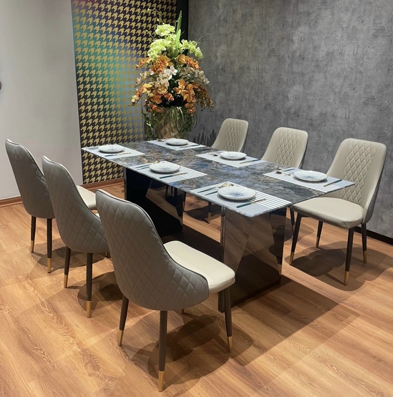 Bộ Bàn Ăn 6 Ghế mặt đá 1382S - Cửa Hàng Bàn Ăn Mặt Đá Nhập Khẩu Đẹp