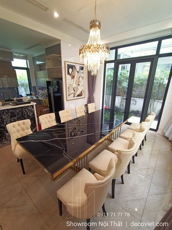 Phòng Bếp Đẹp Sang Trọng Với Bộ Bàn Ăn Inox Mặt Đá 10 Ghế 1098S !