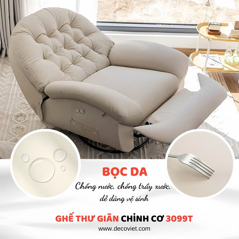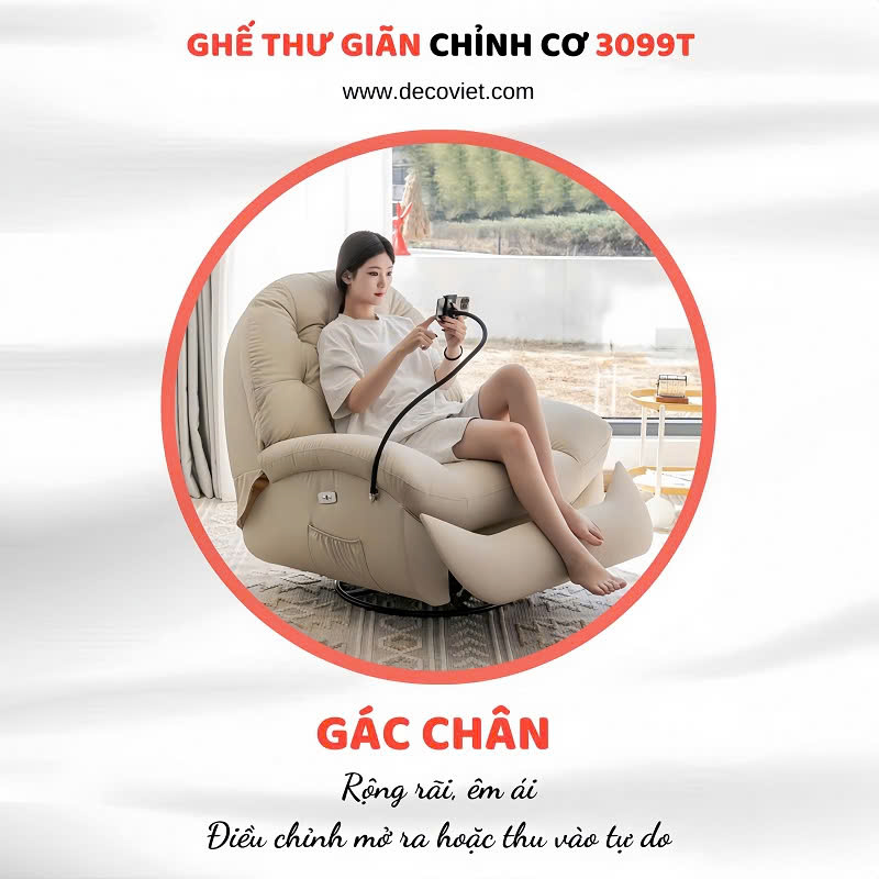 Với thiết kế thông minh và tính năng vượt trội, ghế thư giãn chĩnh điện của Nhà Decor chính là sự lựa chọn hoàn hảo cho phòng khách, phòng ngủ hoặc phòng đọc sách riêng tư. Đây không chỉ là món đồ nội thất giúp bạn nghỉ ngơi mà còn là điểm nhấn tinh tế, giúp bạn nâng tâm giá trị không gian sống.