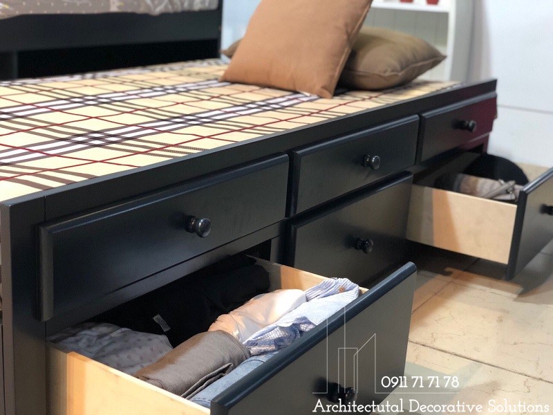 Giường Tầng Giá Rẻ 3T được thiết kế đẹp với các họa tiết trang trí. Thiết kế tối ưu để tiết kiệm diện tích phòng ngủ, sử dụng cho cả trẻ em và người lớn. Ưu điểm lớn của loại giường này là rộng rãi, dùng cho 2-3 người cả trẻ em và người lớn với 2 giường, tầng trên rộng 1m4, tầng dưới rộng 1m. Phía dưới tầng 1 là các hộc kéo dùng để chứa đồ, cầu thang chắc chắn.