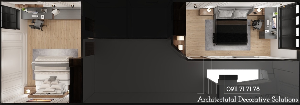 Bản vẽ tổng quan nội thất nhà phố 2 phòng ngủ